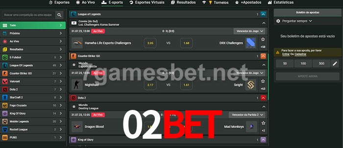 O 02bet oferece uma grande seleção de opções de apostas em e-sports com probabilidades competitivas